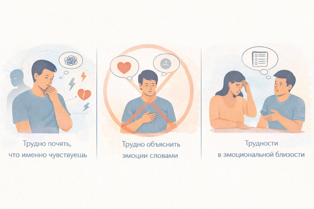 Часто корни этой проблемы уходят в детство, когда чувства либо игнорировались, либо рассматривались как что-то небезопасное. Дети, выросшие в таких условиях, могут вырасти функциональными взрослыми, действующими в мире, где эмоции остаются на втором плане. Но в отношениях партнёр может чувствовать себя изолированным из-за отсутствия эмоционального отклика. Это приводит к недопониманиям и конфликтам, когда один из партнёров ожидает поддержки, а получает лишь практические советы и молчание.