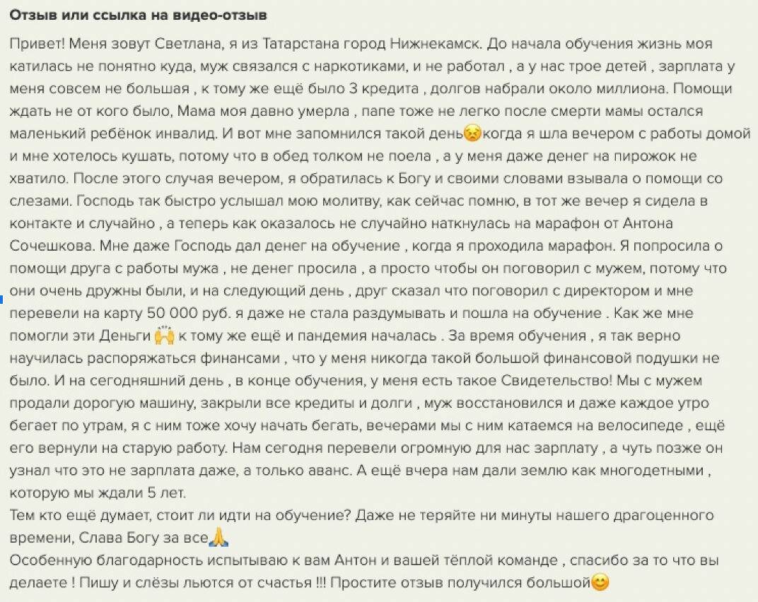 Эти перемены стали возможны благодаря изучению духовных законов, которые изменили не только материальное положение, но и всю жизнь семьи.
