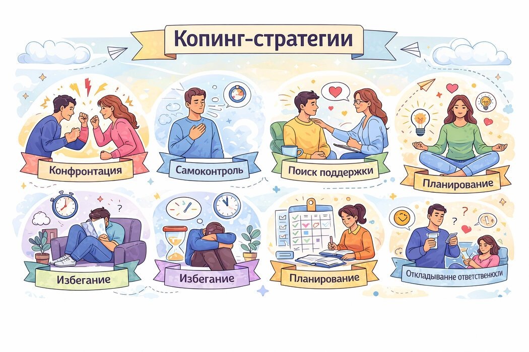 Копинг-стратегии могут быть направлены как на решение проблем, так и на управление эмоциями. Зрелое совладание требует гармоничного сочетания обоих подходов.