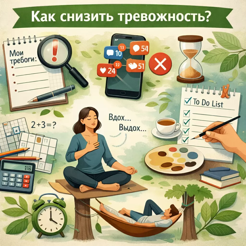 Также желательно снизить количество уведомлений и шума из внешнего мира. Минимизируйте уведомления от соцсетей, оставляя только важные, выделяйте время для новостей и старайтесь не начинать день с телефона. Эти простые шаги могут существенно снизить уровень тревожности.