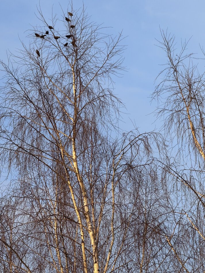 Когда ветви деревьев обрисовываются на фоне ясного неба, без листвы, это создает необычный образ. Природа словно рисует свое хаотичное и непринужденное творение. На верхушках сидят птицы, целыми стайками или поодиночке — оба варианта смотрятся завораживающе.