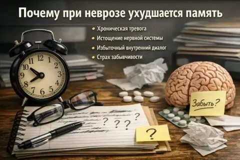 На фоне этих изменений у пациента возникает страх, как будто его мозг подвергается серьезным изменениям, что создает ощущение близости серьезных заболеваний. Однако причина таких симптомов кроется не в разрушении памяти, а в снижении концентрации и способности обрабатывать информацию.