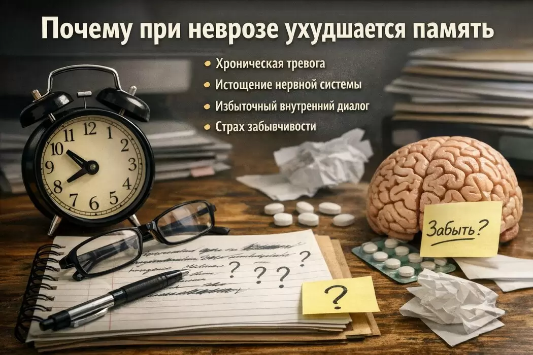 Многие люди, столкнувшиеся с неврозами, начинают замечать у себя ухудшение оперативной памяти. Забытые ключи, отмененные заказы такси, потерянные мысли в разговоре – ситуации, знакомые многим, и нередко ставящие под сомнение психическое здоровье. Человек осознает, что не может сосредоточиться на прочитанном или удерживать нить беседы, часто проверяет одну и ту же информацию и испытывает временное забывание.